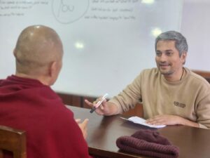 Over the past three years, LHA has offered beginner- and intermediate-level English courses for Geshes (monks who hold doctorates in Buddhist philosophy). Shah had a clear objective for his time in Dharam- sala—to find a way for monks to continue learning and teaching conversational English at higher levels. Shah worked closely with LHA to create a scholarship program, the Scholarship for Tibetan Buddhist Monks, to provide Geshes with the opportunity to study English at the highest-level language academy in India—the Cambridge Academy of English in Bengaluru.