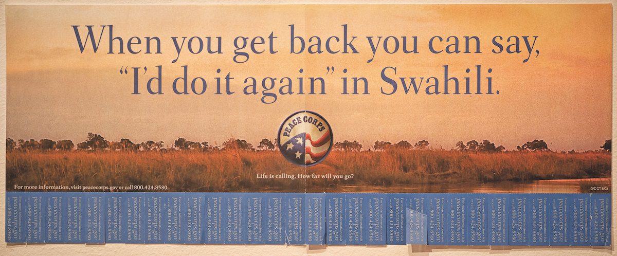 Office of Recruitment Resources and Marketing poster, 27″ x 36″. Design: Chris Fauver of Greenfield/Belsar Ltd. Museum of the Peace Corps Experience. Donated by Janet Matts (Kenya 1977–79)