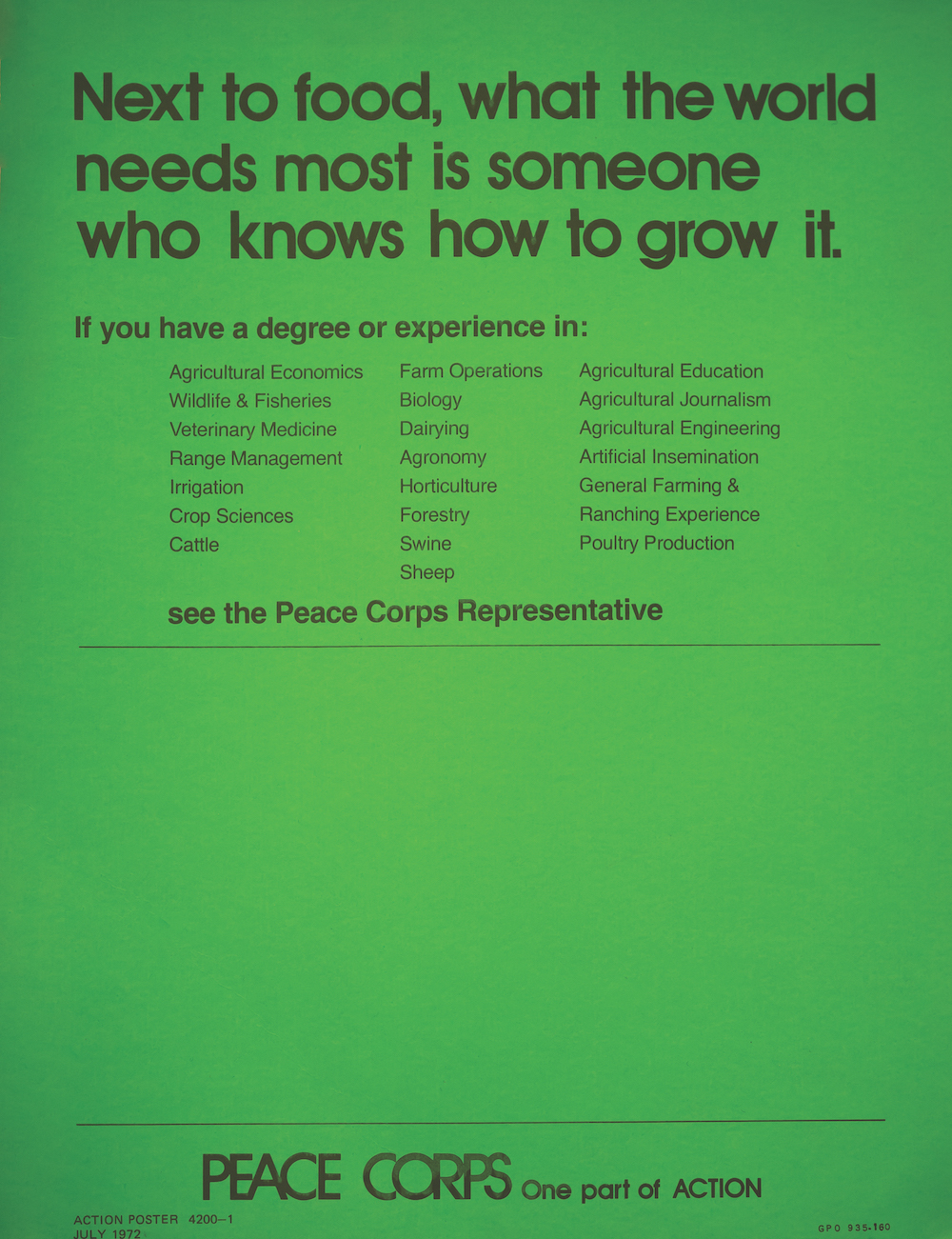 “Help Peace the World Together: Peace Corps.” 1972 anonymous design