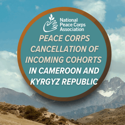 Cancellation of Incoming Cohorts to Cameroon and Kyrgyz Republic Due to agency-wide restructuring and recommendations from the Department of Government Efficiency, the Peace Corps has cancelled the June 2025 volunteer cohorts for Cameroon and the Kyrgyz Republic. While current operations remain active, new Volunteers will not depart as scheduled. The Peace Corps remains committed to its partnerships in both countries and to supporting Volunteers through continued collaboration and connection. Read more from the Peace Corps Press Release below. FOR IMMEDIATE RELEASE: Tuesday, May 20, 2025 Cancellation of Incoming Cohorts to Cameroon and Kyrgyz Republic As part of agency’s restructuring of...