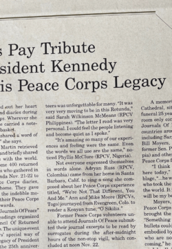 January 6th is a date most Americans will not soon forget. Looking back now, after the insurrection, I marvel that, in 1988, 400 of us Returned Peace Corps Volunteers were invited to spend 24 hours in the Capitol Rotunda with little more than the directive that we provide our names and Social Security numbers—and this was after closing hours! The event, dubbed “Journals of Peace: A Very Special Commemoration by the National Council of Returned Peace Corps Volunteers,” was first announced in the Fall 1988 issue of this magazine, WorldView. The announcement read: “Come join us for this singular event....