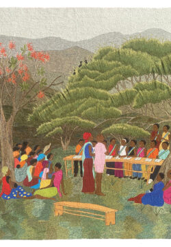 Kathleen Malu served as a Peace Corps Volunteer in Rwanda in 1980. Thirty years later, in 2010, she returned as a Fulbright Scholar to a very different country. In the intervening years, the horrors of the Rwandan genocide had shocked the world. In 1994, over the course of 100 days, it is estimated that close to one million Tutsi were massacred by Hutus. During her second stay in Rwanda, Malu met Christiane Rwagatare and a group of women using art to preserve tableaus of ordinary Rwandan life, as well as scenes of reconciliation and restoration. The intricate tapestry featured here...