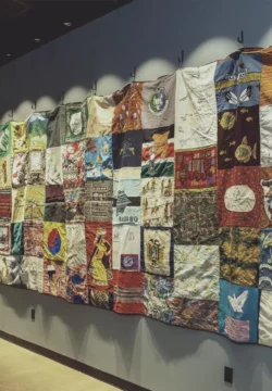 The Patchwork of Peace quilt, created in 1990 at the National Peace Corps Association conference in Eugene, Oregon, is both a historical artifact and a symbol—a tactile expression of memory, advocacy, and collective identity among RPCVs. Measuring 27 feet in length and composed of 100 panels contributed by individual Volunteers, this community quilt reflects the intersection of art, activism, and social memory.