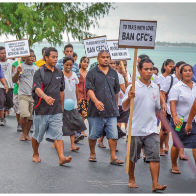 Climate change and Pacific nations heroically trying to save themselves By Mike Tidwell Dying trees, sandbagged shore. Photo for Humans of Kiribati by Raimo Kataotao At the United Nations building in New York, the national flag of every country on earth hangs from a pole outside. Whenever a new country is born — South Sudan being the latest in 2011 — a new pole is set up and a new flag raised. But what happens when a country dies? What happens, for example, if unchecked global warming wipes entire Pacific island nations off the map in the coming years? Will we have...
