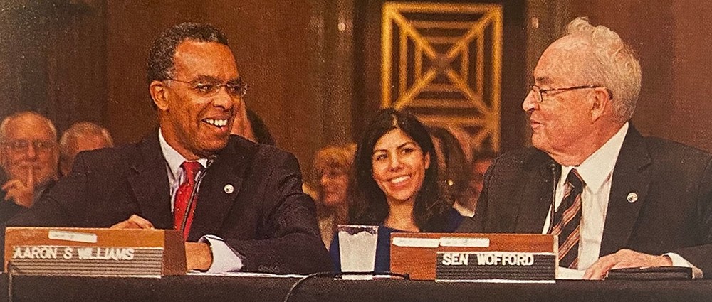 Aaron Williams with Senator Harris Wofford at his confirmation hearing in 2009.