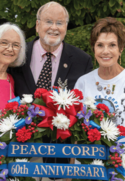 A wreath-laying ceremony at the John F. Kennedy Memorial at Arlington National Cemetery on September 22, 2021 Photography by Eli Wittum Pictured: Honoring a legacy: Three Returned Peace Corps Volunteers who served in Colombia. From left, they are Museum of the Peace Corps Experience co-founder Patricia Wand (1963–65), former Congressman Sam Farr (1964–66), and journalist Maureen Orth (1964–66). On the afternoon of September 22, Northern Virginia Returned Peace Corps Volunteers hosted a wreath-laying ceremony at the John F. Kennedy Memorial at Arlington National Cemetery. It was an in-person event paying tribute to the idea and ideals of the...